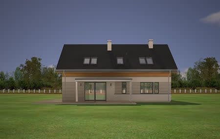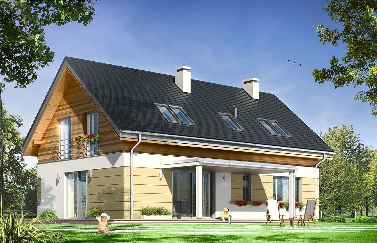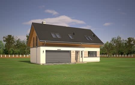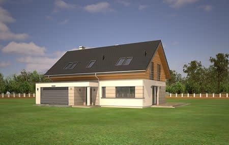 Projekt domu Party to budynek jednorodzinny, którego pierwowzorem jest większa projekt domu Gala z oferty naszej pracowni. Projekt domu Party przeznaczony jest dla 4-5cioosobowej rodziny. Budynek zaprojektowany zoistał jako parterowa willa z użytkowym poddaszem, przekryta dwuspadowym dachem. Prosta bryła domu uzupełniona została wbudowanym częściowo wystającym garażem z płaskim dachem oraz zadaszeniem tarasu ogrodowego. Nowoczesna architektura domu łączy w sobie prostotę brył i płaszczyzn tworzących elewacje z dopracowanym detalem ciekawą kolorystyką i wysokiej jakości materiałami. Projektując dom postawiliśmy na prostotę i jakość architektury. Wnętrze domu Party podzielono na część dzienną i gospodarczą na parterze oraz sypialnie na poddaszu. Na dole połączony salon kuchnia i hol tworzą jedną otwartą przestrzeń dzienną domowników. Ozdobą wnętrza są ładnie wyeksponowane z wejścia schody na poddasze duże przeszklenia salonu i centralny kominek. Na parterze zaprojektowano dodatkowy pokój – sypialnię lub gabinet dwustanowiskowy garaż i kotłownię. W projekcie domu Party na poddaszu przewidziano trzy sypialnie: dwie dziecięce z szafami wnękowymi i wspólną łazienką oraz wygodną sypialnię rodziców z osobną łazienką i garderobą. Party posiada wszystko czego można oczekiwać od domu jednorodzinnego. Jest nowoczesny energooszczędny łatwy i niedrogi w budowie i późniejszym utrzymaniu a jego wnętrze jest funkcjonalne i przestronne. Pracownia posiada również wersję odbicia lustrzanego projektu Party. Zapraszamy do zapoznania się z całą serią "roztańczonych domów": https://www.mgprojekt.com.pl/makarena, https://www.mgprojekt.com.pl/bolero, https://www.mgprojekt.com.pl/lambada, https://www.mgprojekt.com.pl/party, https://www.mgprojekt.com.pl/party-2, https://www.mgprojekt.com.pl/biba, https://www.mgprojekt.com.pl/tango, https://www.mgprojekt.com.pl/salsa, https://www.mgprojekt.com.pl/rumba, https://www.mgprojekt.com.pl/mambo, https://www.mgprojekt.com.pl/mambo, https://www.mgprojekt.com.pl/fokstrot, https://www.mgprojekt.com.pl/samba.