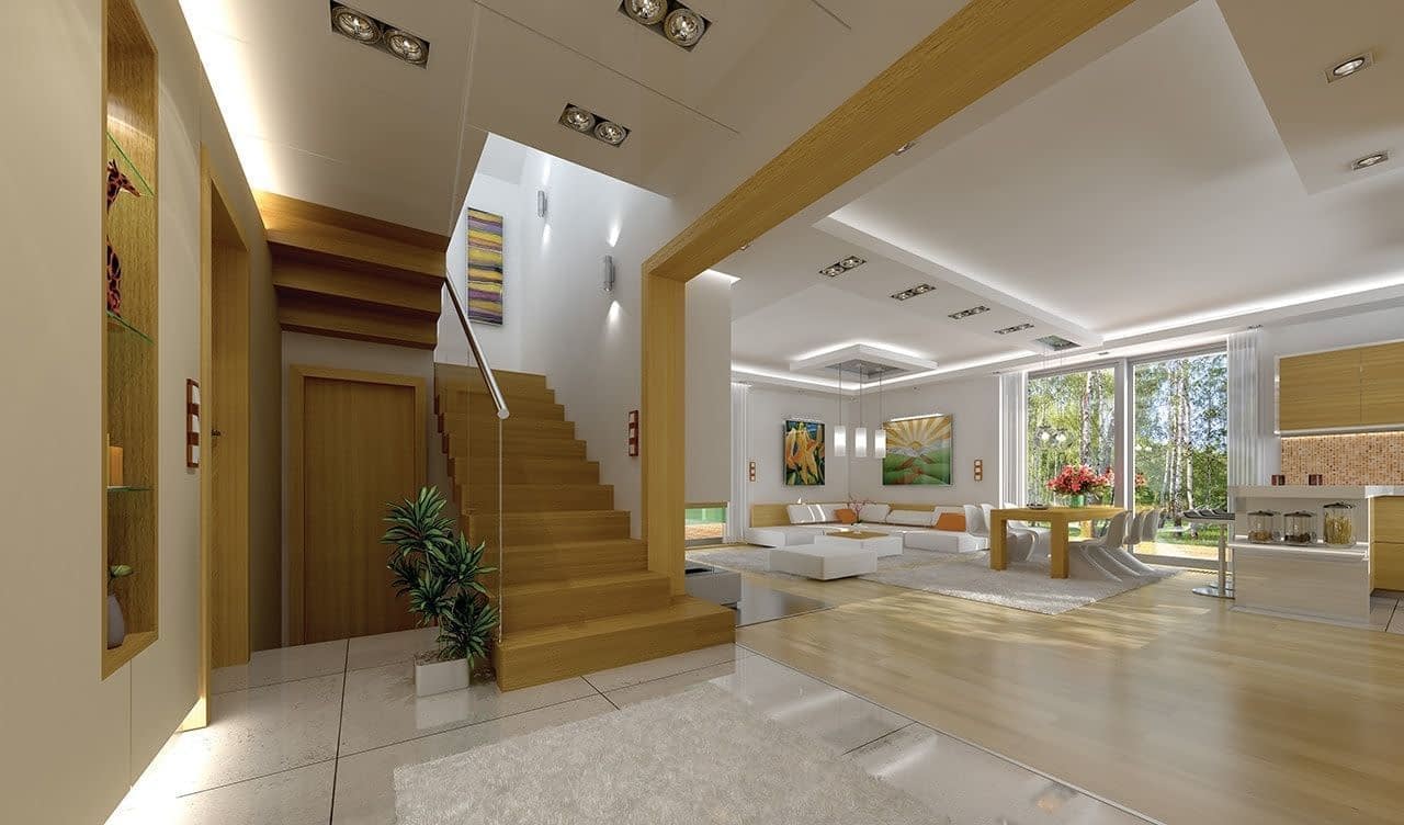 - Zmianę umiejscowienia, kształtu i materiału wykonania schodów w budynku.