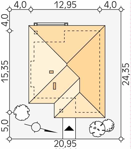 - Minimalne wymiary działki24.35 x 20.95m
