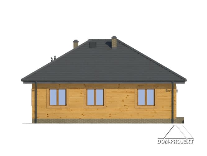 Dom parterowy w konstrukcji szkiel drewnianego.. Duży salon z aneksem kuchennym, kominkiem i wyjściem na taras. Trzy pokoje, łazienka, wc z pralką, wiatrołap i korytarz. Wyjście na poddasze schodami rozkładanymi. Na poddaszu strych.Rzuty