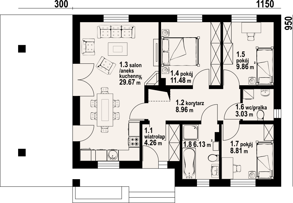 - 1.6 - wc/pralka3.03 m²