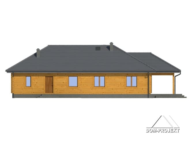 Dom z bali, parterowy z dwoma samodzielnymi mieszkaniami. Mieszkanie główne: duży salon z aneksem kuchennym, kominkiem i wyjściem na zadaszony taras. Dwa pokoje, łazienka, wc, wiatrołap i korytarz. W drugim mieszkaniu: salon z aneksem kuchennym, dwa pokoje, łazienka i korytarz. Dostęp do strychu schodami rozkładanymi. Strych nieużytkowy.Rzuty