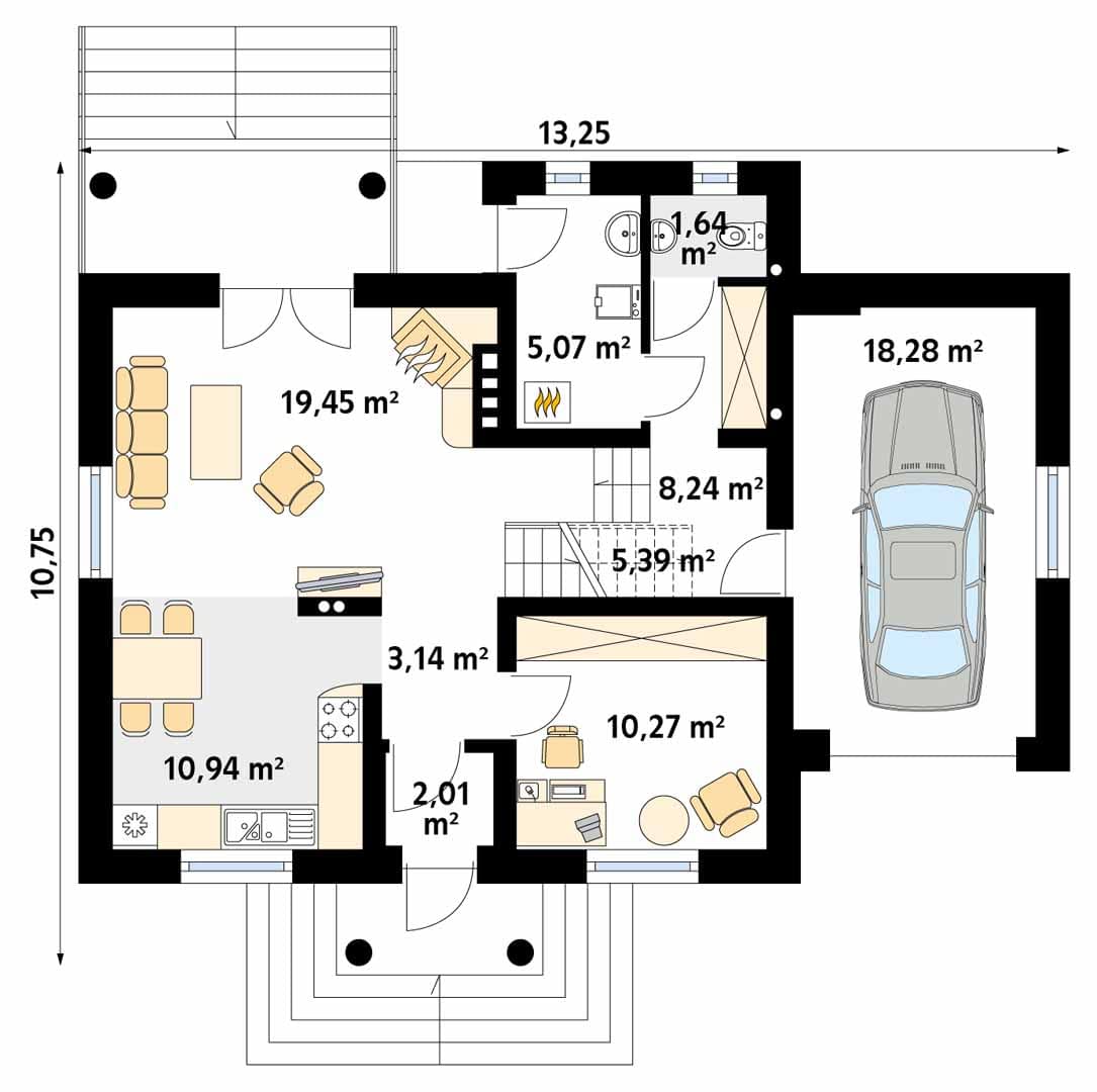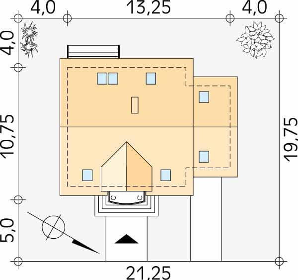 Mały dom mieszkalny, jednorodzinny. Na parterze zaprojektowano dodatkowy pokój. Na poddaszu znajdują się trzy przestronne pokoje. Architektura domu zawiera elementy, które jednoznacznie nawiązują do tradycyjnych domów polskich.Konstrukcja