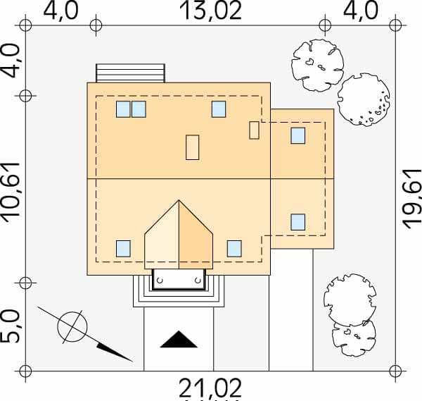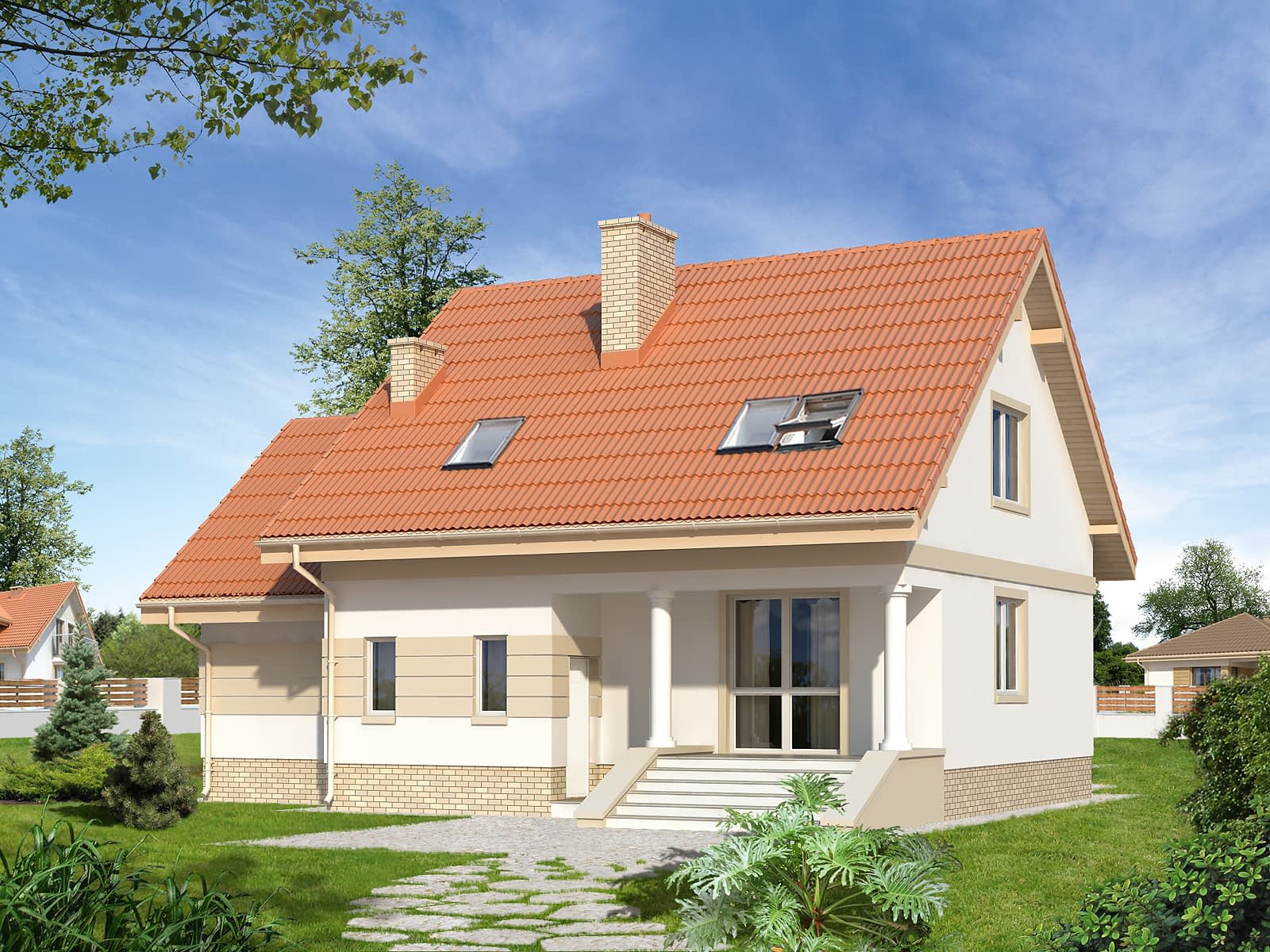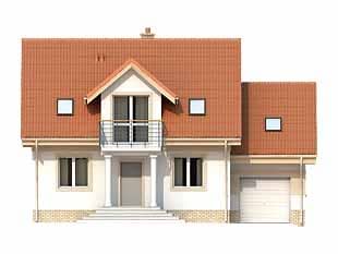 Budynek o zwartej bryle, przeznaczony dla 4 – 5-osobowej rodziny. Na parterze część dzienna, dodatkowy pokój oraz część gospodarcza z garażem. Na poddaszu trzy wygodne pokoje, garderoba oraz przestronna łazienka.Konstrukcja