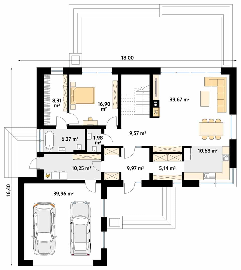 - Szerokość domu18 m