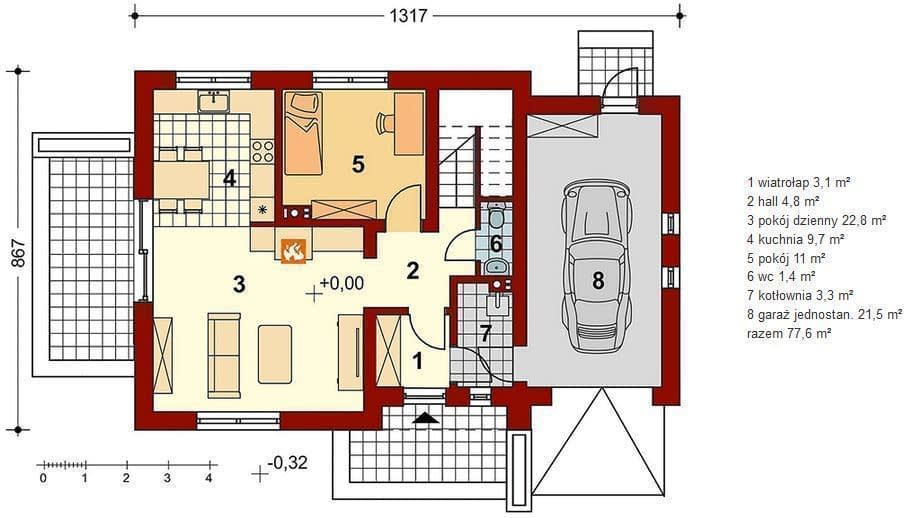 Każda wersja standardowa projektu została zaprojektowana pod ogrzewanie za pomocą kotła na Pellet.