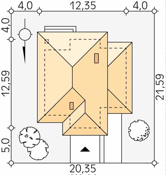 Ściany: 2-warstwowe - YTONG 36,5 cm + styropian Termo Organika, Stropy: żelbetowe, wylewane, Dach: dachówka ceramiczna, kąt nachylenia 21° i 21°Rzuty