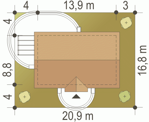 - Minimalne wymiary działki16.8 x 20.9m