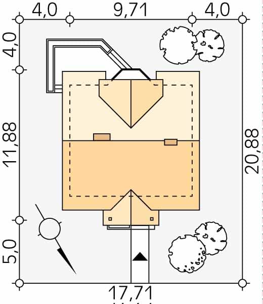 - Minimalne wymiary działki20.88 x 17.71m