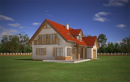 Projekt domu Pod Dębami to uroczy dom jednorodzinny, parterowy, z użytkowym poddaszem, przeznaczony dla 4-5 osobowej rodziny. Dom Pod Dębami został zaprojektowany w taki sposób, aby nadawał się także na działkę o niekorzystnym ułożeniu ogrodu i wjazdu względem stron świata - szczególnie na parcelę z wjazdem od południa. Powierzchnia użytkowa proejktu Pod Dębami to 150,89 m2.Projekt domu Pod Dębami architektura i wnętrzeGotowy projekt domu Pod Dębami to budynek parterowy, z poddaszem użytkowym, przekryty dwuspadowym dachem z lukarnami z przodu i z tyłu. Rzut parteru domu ma formę litery "T", z zasadniczą prostokątną częścią i wystającymi dobudówkami: garażu i dodatkowego pokoju na parterze. Spokojna tradycyjna architektura budynku, z dużą ilością drewnianych elementów, oraz czerwonym dachem z dachówki i okładzinami klinkierowymi, tworzą przytulny nastrój odwołania do przedwojennych willi. Ładne przeszklenia okien i drzwi balkonowych w projekcie Pod Dębami stanowią urozmaicenie elewacji, a zarazem otwierają wnętrze budynku na otaczający ogród. Projekt Pod Dębami, dzięki dość prostej bryle, jest łatwy w budowie, będzie także niedrogi w utrzymaniu. Koszt budowy domu Pod Dębami to 271230 zł za stan surowy zamknięty.Detale architektoniczne zastosowane w projekcie, jak: lukarny, łukowe okienka, podcień budynku wsparty na drewnianych słupkach – wszystkie te elementy pasują do siebie i tworzą spójną całość. Nie komplikują też zasadniczej konstrukcji budynku.Wnętrze projektu Pod Dębami podzielono na dwie części: na parterze budynku mamy część dzienną, oraz pomieszczenia gospodarcze i garaż, a na poddaszu część z sypialniami i łazienkami. Do projektu Pod Dębami wchodzimy przez wygodny przedsionek, połączony przejściem z garażem i kotłownią. Z holu plan prowadzi nas na boki: do przestrzeni dziennej - z salonem, jadalnią i kuchnią, oraz do dodatkowego pokoju - gabinetu, lub sypialni gościnnej, oraz łazienki. Z salonu drzwiami balkonowymi wydostaniemy się na zadaszony taras, a przez piękne narożne okno możemy podziwiać ogród, znajdujący się przed, lub z boku domu. Reprezentacyjne schody projektu wiodą nas na poddasze, a tam znajdujemy trzy wygodne sypialnie, w tym sypialnię rodziców z osobną łazienką (właściwie pokojem kąpielowym) i garderobą, oraz sypialnie dziecięce z drugą łazienką. Pomieszczenia na poddaszu budynku, mimo skosów są bardzo przestronne i komfortowe.Pracownia MGProjekt posiada wersję odbicia lustrzanego projektu Pod Dębami.
