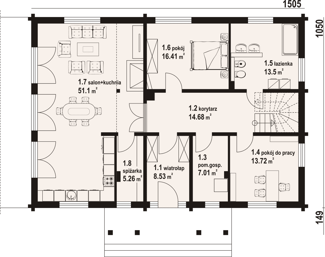 - 1.7 - salon+kuchnia51.1 m²