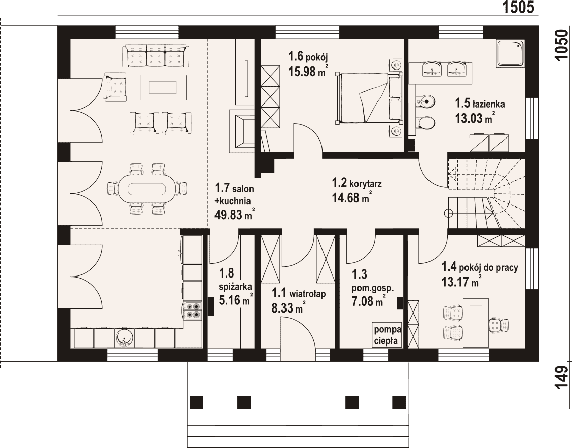 - 1.7 - kuchnia, salon49.83 m²