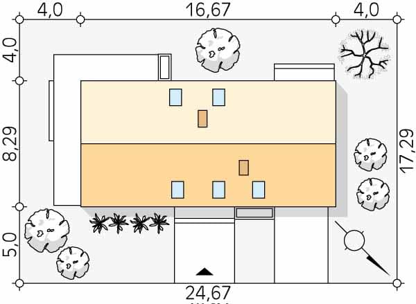 - Minimalne wymiary działki17.29 x 24.67m