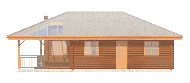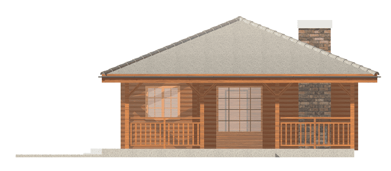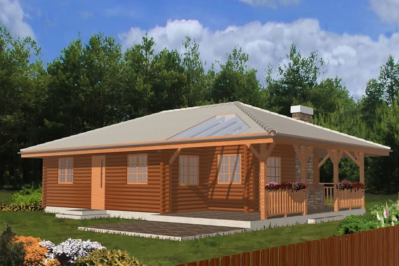Projekt domu Pogodny Drewniany to mały i ekonomiczny domek z bali drewnianych. Parterowy, niepodpiwniczony, o prostej i wyważonej bryle, dla czteroosobowej rodziny. Może być traktowany zarówno jako dom jednorodzinny, jak i letniskowy. Budynek posiada czytelny i funkcjonalny rozkład pomieszczeń oraz wyraźny ich podział na strefy: dzienną i nocną, co daje poczucie komfortu i wygody. Obszerny zadaszony taras zapewnia możliwość korzystania z zewnętrznego kominka (grila) bez względu na warunki atmosferyczne. Kominek, zlokalizowany w salonie umożliwia rozprowadzenie ciepła po całym domu. Projekt domu Pogodny Drewniany dostępny jest w technologii drewnianej oraz murowanej. Pracownia dysponuje także wersją z poddaszem użytkowym. Każdy z wariantów projektu dostępny jest ponadto w odbiciu lustrzanym. Komplet czterech egzemplarzy zawiera: projekt architektury domu, konstrukcji oraz schematy instalacji wewnętrznych. Na prośbę Inwestora, do projektu dołączamy zgodę na dokonanie zmian według życzenia Klienta.