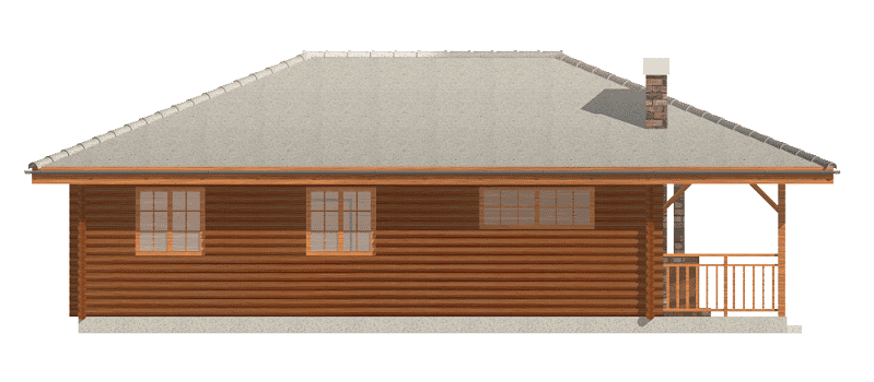 Projekt domu Pogodny Drewniany to mały i ekonomiczny domek z bali drewnianych. Parterowy, niepodpiwniczony, o prostej i wyważonej bryle, dla czteroosobowej rodziny. Może być traktowany zarówno jako dom jednorodzinny, jak i letniskowy. Budynek posiada czytelny i funkcjonalny rozkład pomieszczeń oraz wyraźny ich podział na strefy: dzienną i nocną, co daje poczucie komfortu i wygody. Obszerny zadaszony taras zapewnia możliwość korzystania z zewnętrznego kominka (grila) bez względu na warunki atmosferyczne. Kominek, zlokalizowany w salonie umożliwia rozprowadzenie ciepła po całym domu. Projekt domu Pogodny Drewniany dostępny jest w technologii drewnianej oraz murowanej. Pracownia dysponuje także wersją z poddaszem użytkowym. Każdy z wariantów projektu dostępny jest ponadto w odbiciu lustrzanym. Komplet czterech egzemplarzy zawiera: projekt architektury domu, konstrukcji oraz schematy instalacji wewnętrznych. Na prośbę Inwestora, do projektu dołączamy zgodę na dokonanie zmian według życzenia Klienta.