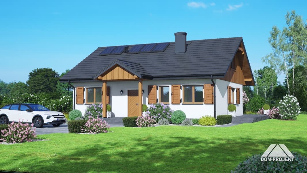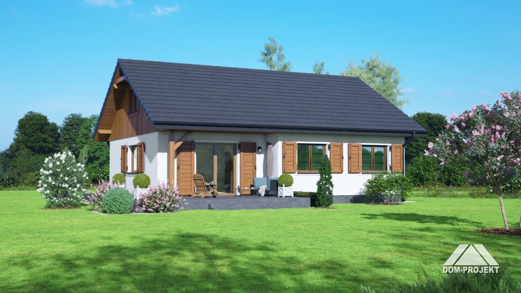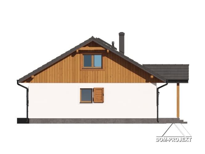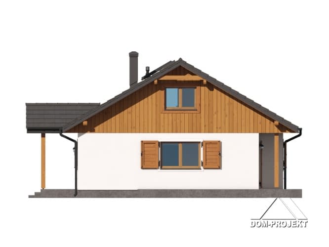 Projekt domu murowanego, o klasycznej, ponadczasowej elewacji oraz wygodnym układzie funkcjonalnym. Sercem domu jest wygodny salon z aneksem kuchennym oraz wyjściem na częściowo zadaszony taras. W projekcie przewidzieliśmy trzy sypialnie, łazienkę oraz wc z miejscem na pralkę. Układ funkcjonalny uzupełnia kotłownia oraz wiatrołap. Możliwość adaptacji poddasza otwiera wiele opcji oraz pozwala na kreatywne zagospodarowanie przestrzeni.Rzuty