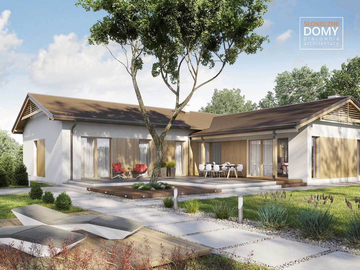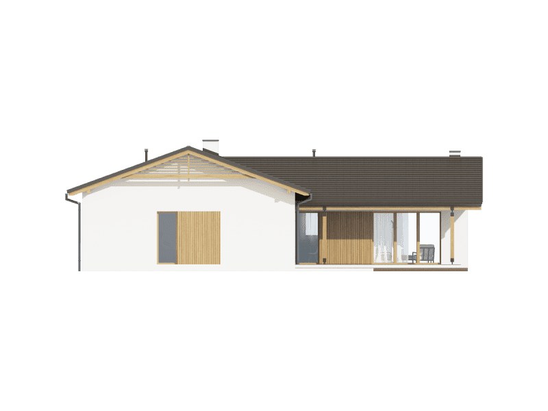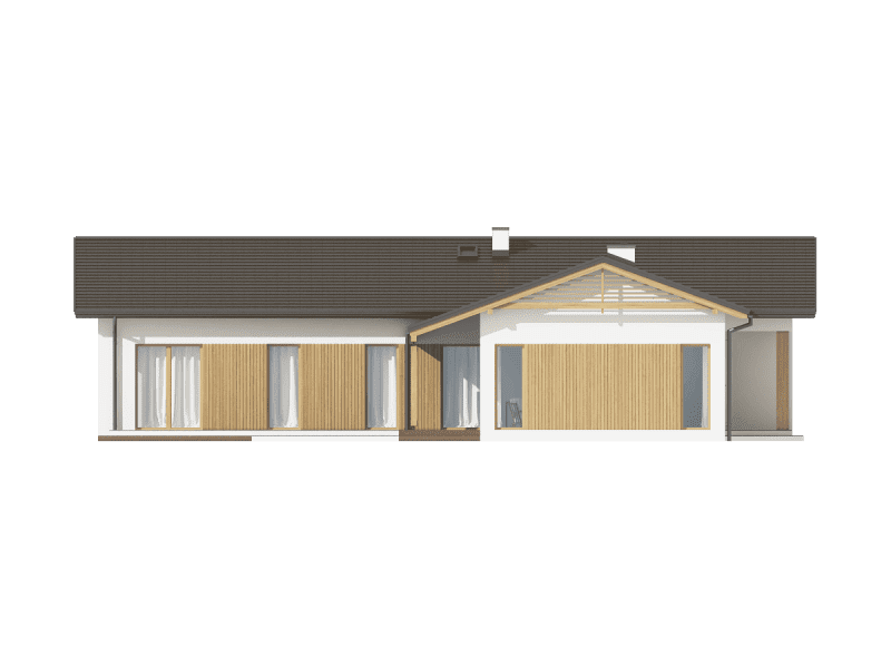 Ponza to projekt nowoczesnego i bardzo kameralnego domu parterowego. Na uwagę zasługuje przede wszystkim nietypowa a zarazem nieskomplikowana bryła domu.
