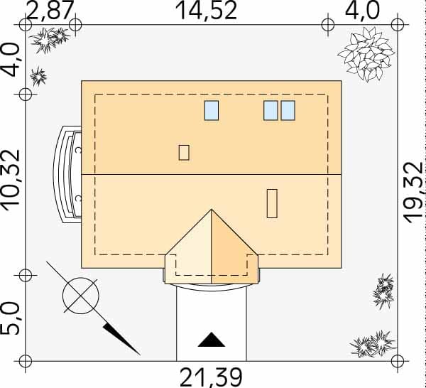 Dom jednorodzinny, niepodpiwniczony przeznaczony dla 4-osobowej rodziny. Dom o prostej, zwartej bryle, łatwy w budowie i ekonomiczny w utrzymaniu. Na parterze znajduje się sypialnia z osobną łazienką. Na poddaszu znajdują się trzy sypialnie z łazienką i pralnią.Konstrukcja