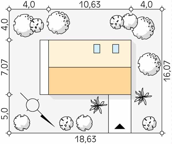 - Minimalne wymiary działki16.07 x 18.63m