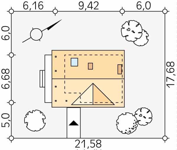 - Minimalne wymiary działki17.68 x 21.58m