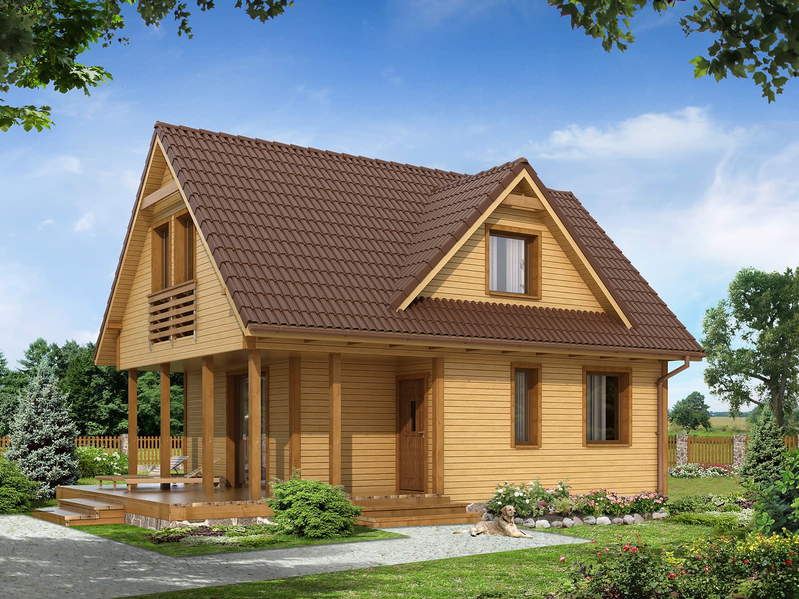 Niewielki jednorodzinny dom drewniany. Na parterze znajduje się część dzienna składająca się z salonu z kominkiem, kuchni z jadalnią i łazienki. Przylega do niej zadaszony taras. Na poddaszu trzy sypialnie z łazienką i garderoba tworzą część nocną domu.Konstrukcja