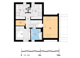 - rzuty wszystkich charakterystycznych poziomów obiektu budowlanego, w tym widok dachu lub przekrycia, przedstawiające również układ funkcjonalno-przestrzenny obiektu budowlanego,