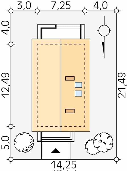 - Minimalne wymiary działki21.49 x 14.25m