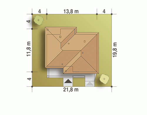 - Minimalne wymiary działki19.8 x 21.8m