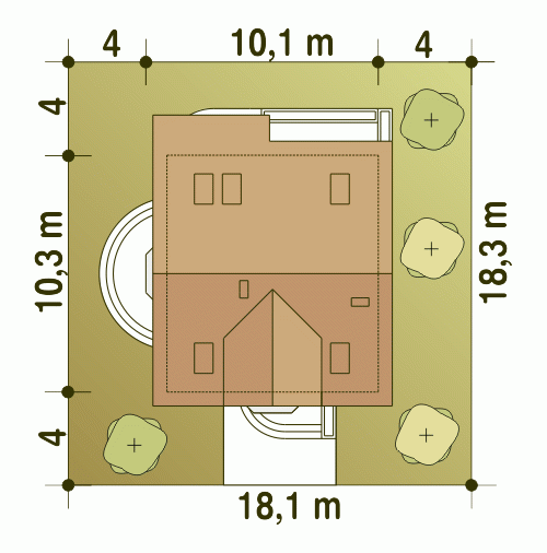- Minimalne wymiary działki18.3 x 18.1m