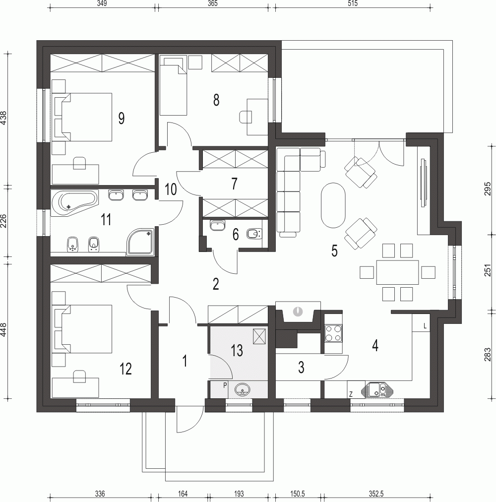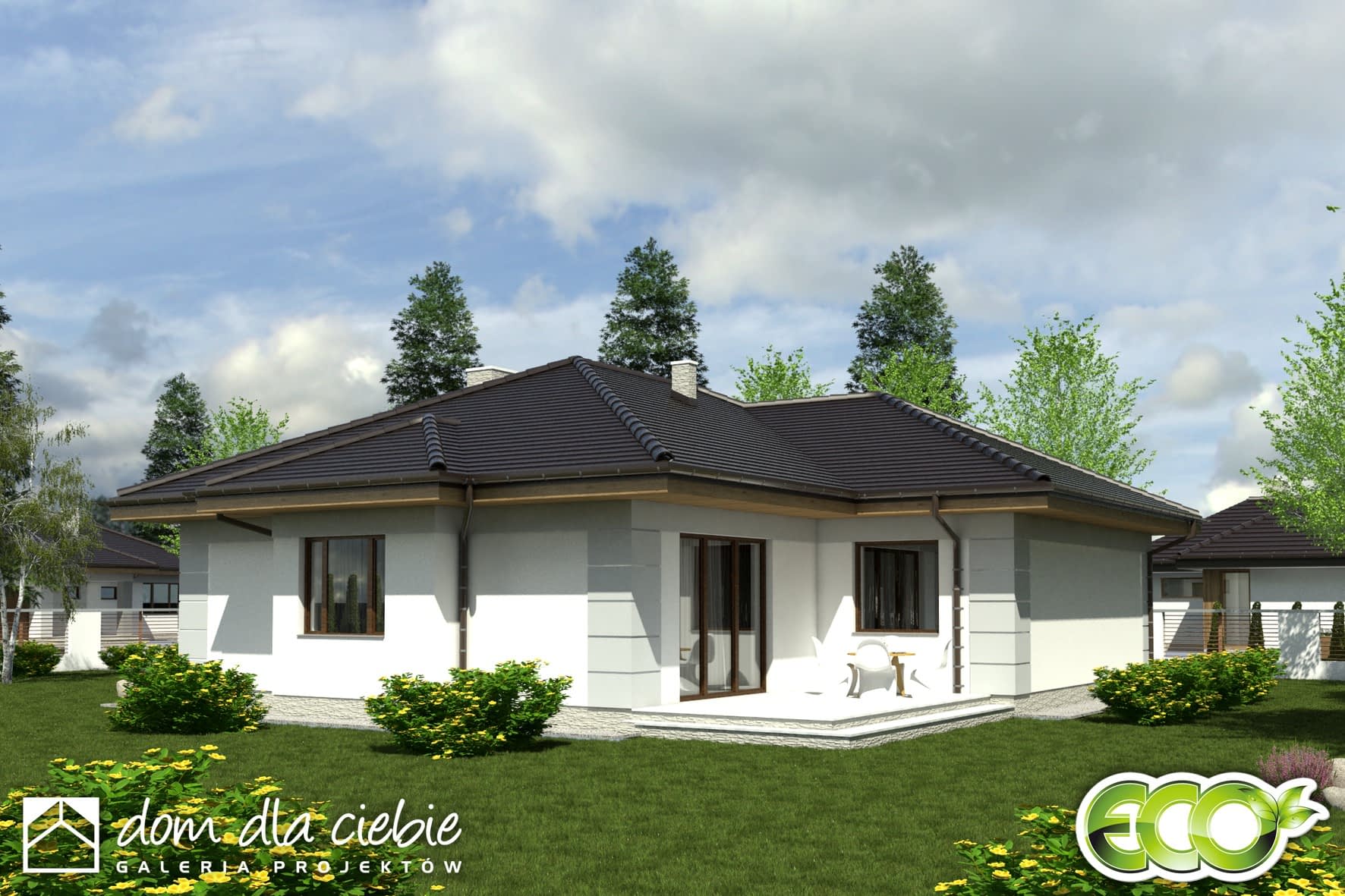 Projekt Radek IV to elegancki dom parterowy bez garażu.