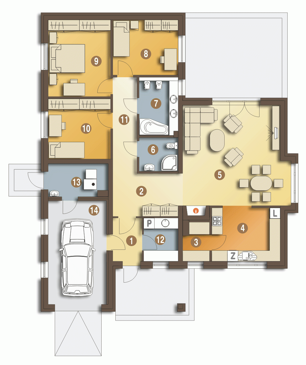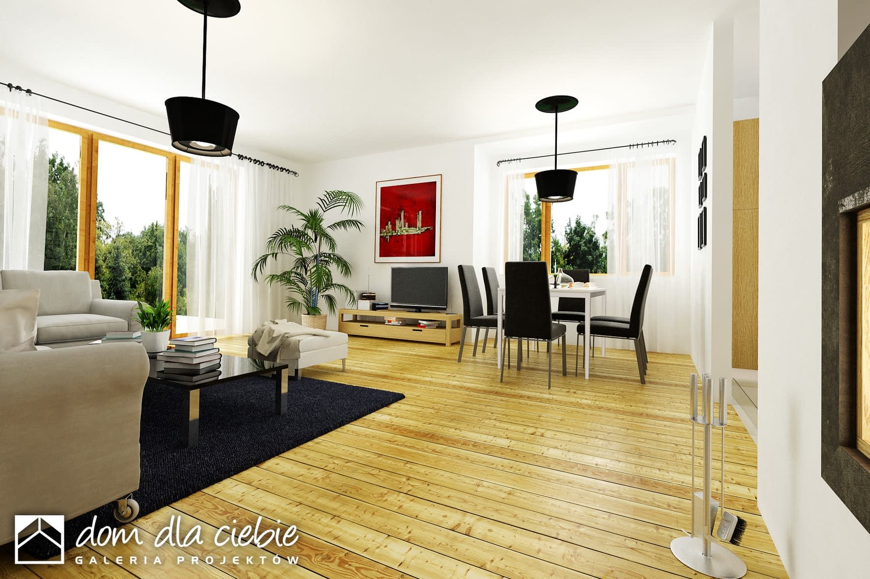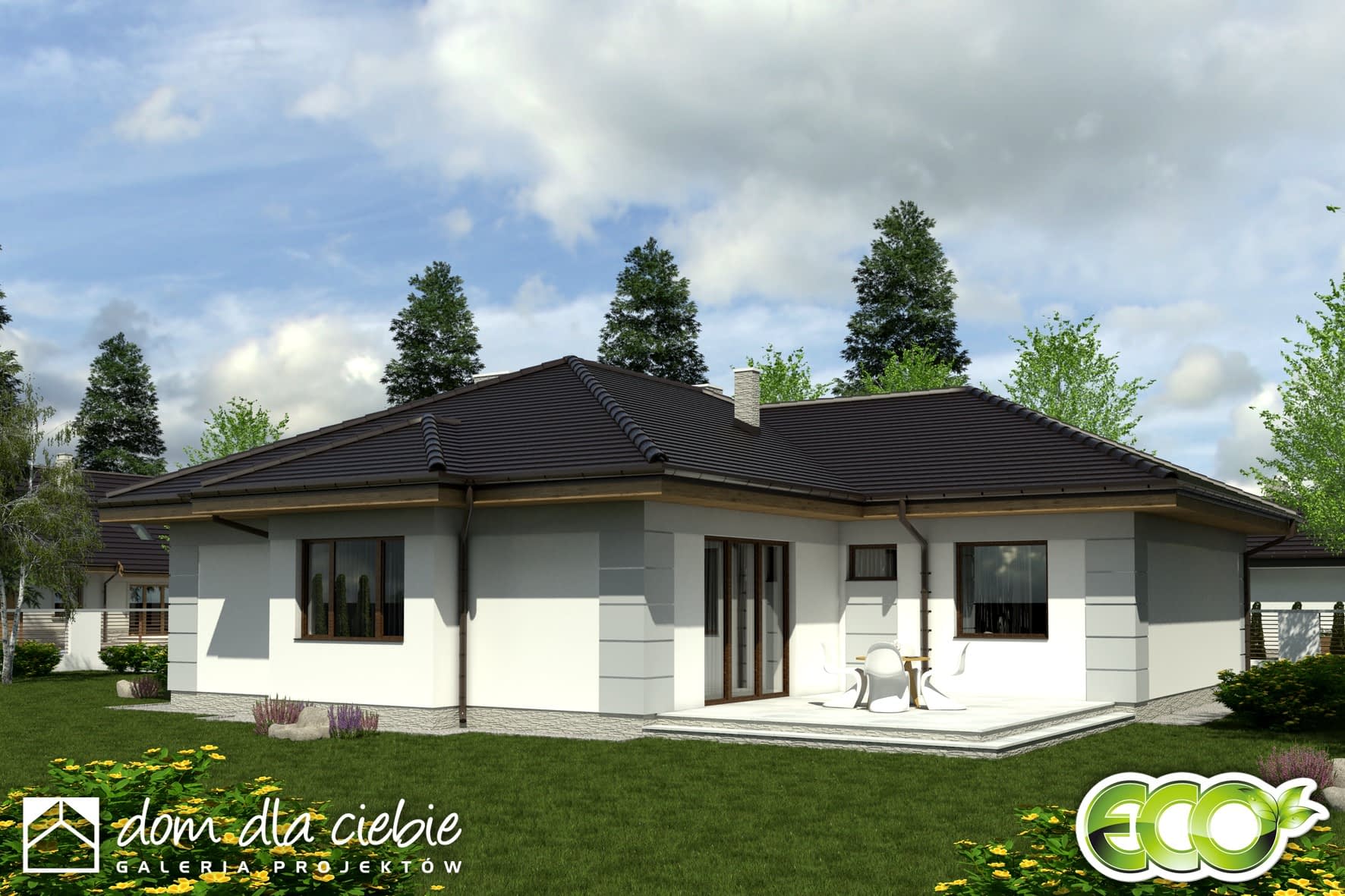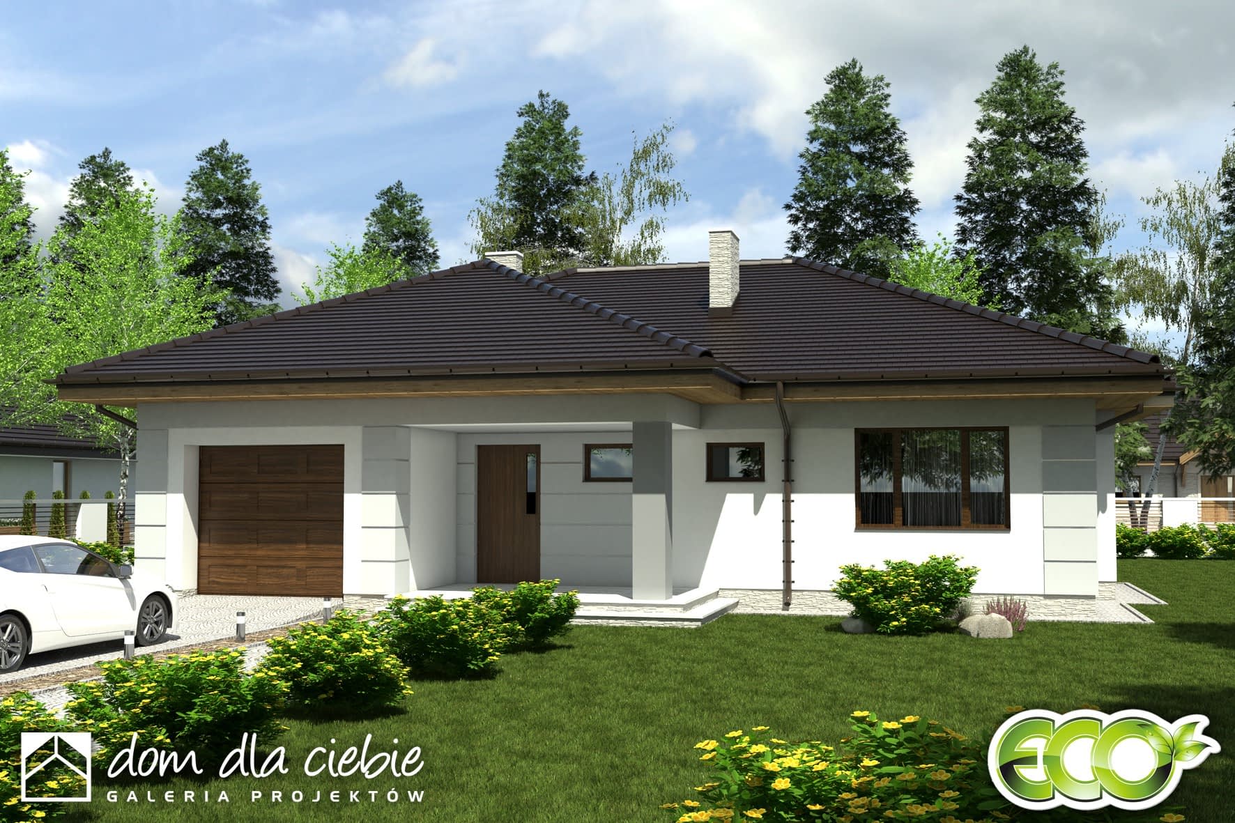 Projekt Radek to piękny parterowy dom z kotłownią na paliwo stałe i wbudowanym garażem.