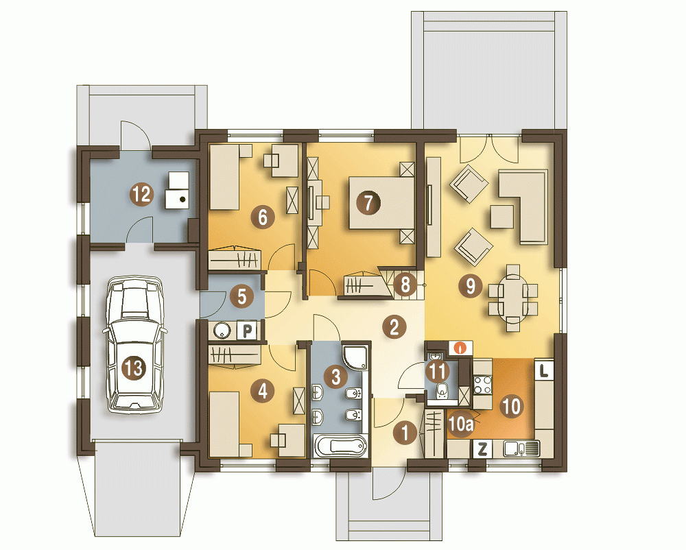 Nasze projekty oferujemy w 3 egzemplarzach, zawierających projekt architektoniczno-budowlany i projekt techniczny. Projekt zagospodarowania działki lub terenu nie wchodzi w skład projektu oferowanego do sprzedaży. Projekt ten należy zlecić we własnym zakresie lokalnemu projektantowi, który opracuje go na podstawie danych zawartych w projekcie architektoniczno-budowlanym i technicznym, po dostosowaniu projektu do warunków lokalnych i wymagań inwestora.