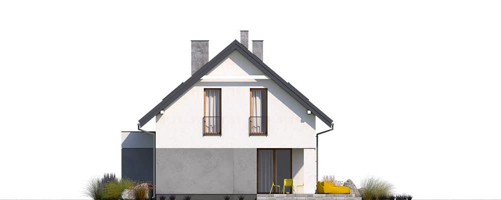 Dom jednorodzinny z garażem dwustanowiskowym, wolnostojący, niepodpiwniczony z poddaszem użytkowym.