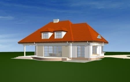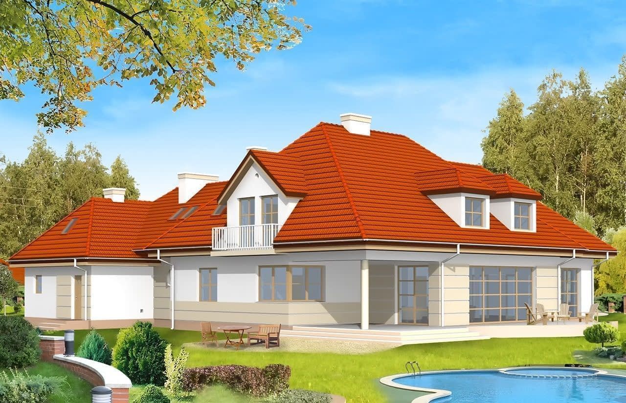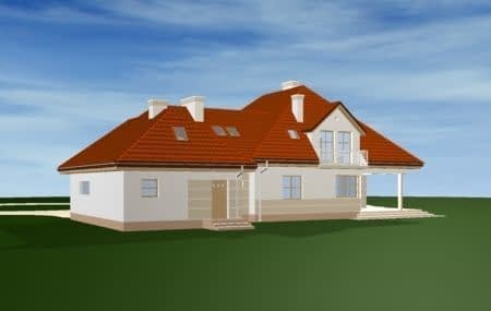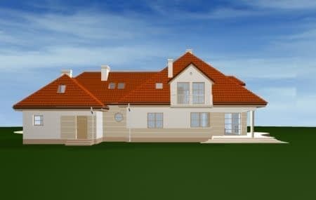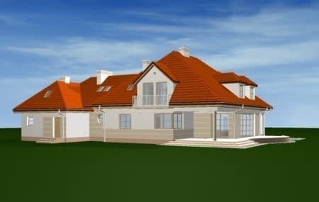 Projekt domu Rezydencja to duża reprezentacyjna willa. Dom posiada rozbudowane funkcje, z pomieszczeniami gospodarczymi, rekreacyjnymi (jak pokój kąpielowy z sauną czy pokój telewizyjny) oraz z przestrzenią przeznaczoną na pracę w domu. Dom ma atrakcyjny wygląd - jego bryła przyciąga wzrok. We wnętrzu domu Rezydencja zaprojektowano obszerny salon połączony z jadalnią i holem. Sam hol - z reprezentacyjnymi schodami. Atutem pokoi na poddaszu jest ich przestronność. Mocno rozbudowana jest część sypialni rodziców - z osobną łazienką, dwiema garderobami i balkonem na ogród. Pracownia posiada również projekt domu Rezydencja w odbiciu lustrzanym.