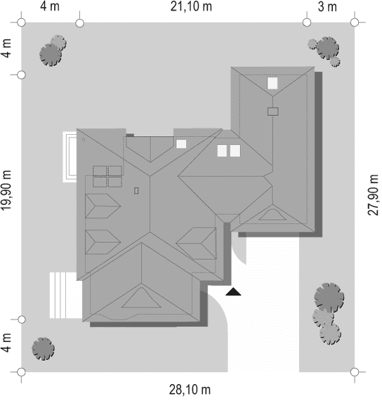 - Minimalne wymiary działki27.9 x 28.1m