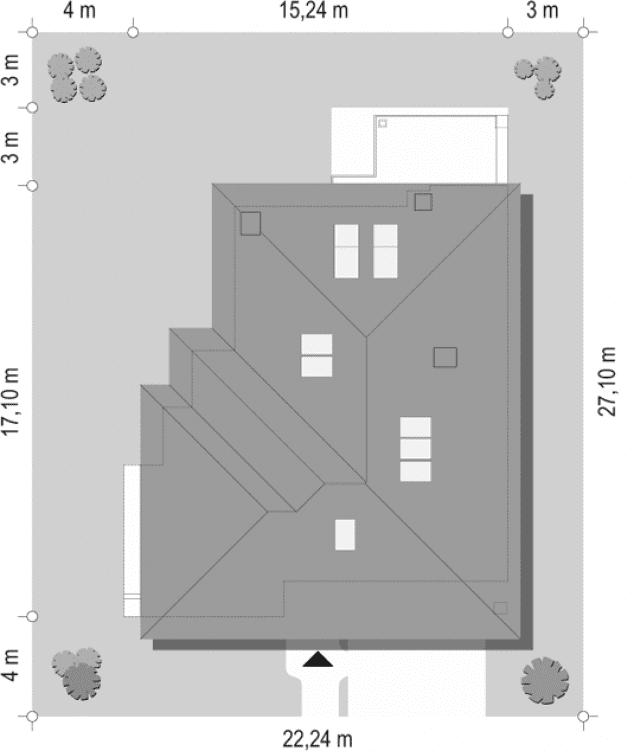- Minimalne wymiary działki27.1 x 22.24m