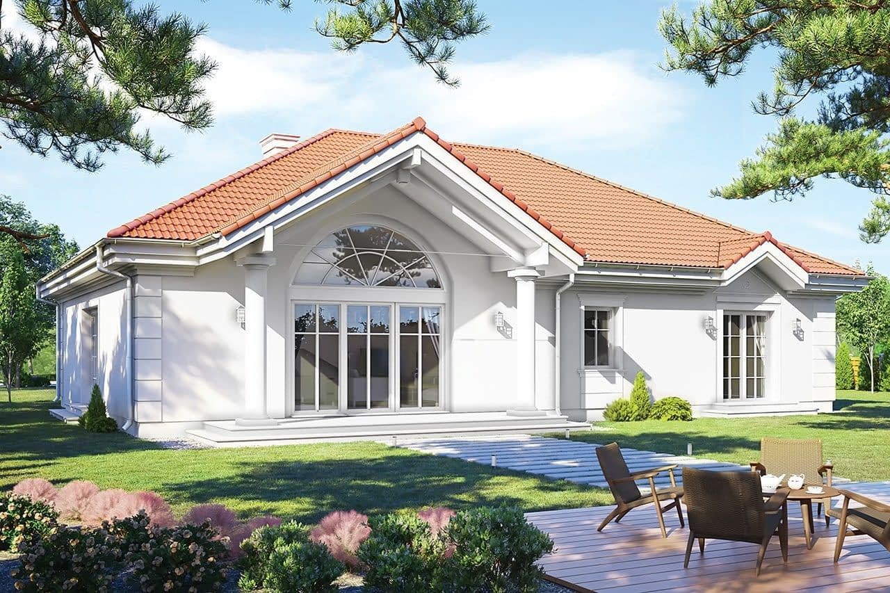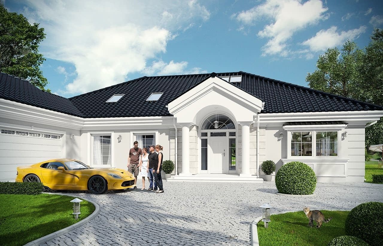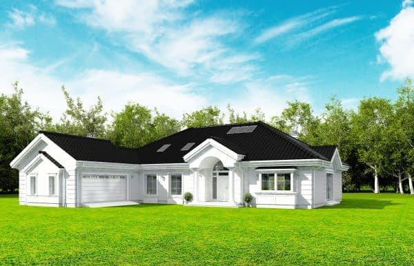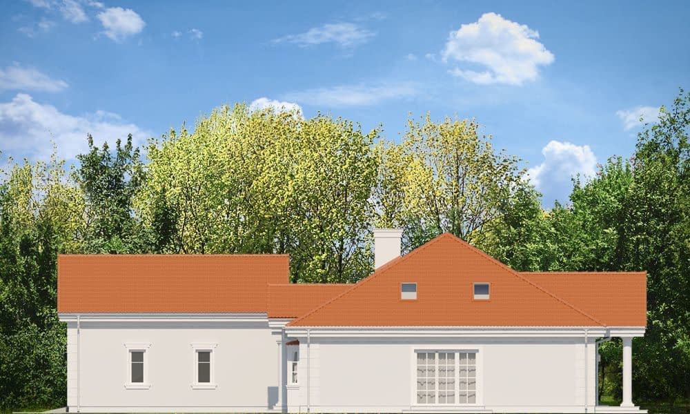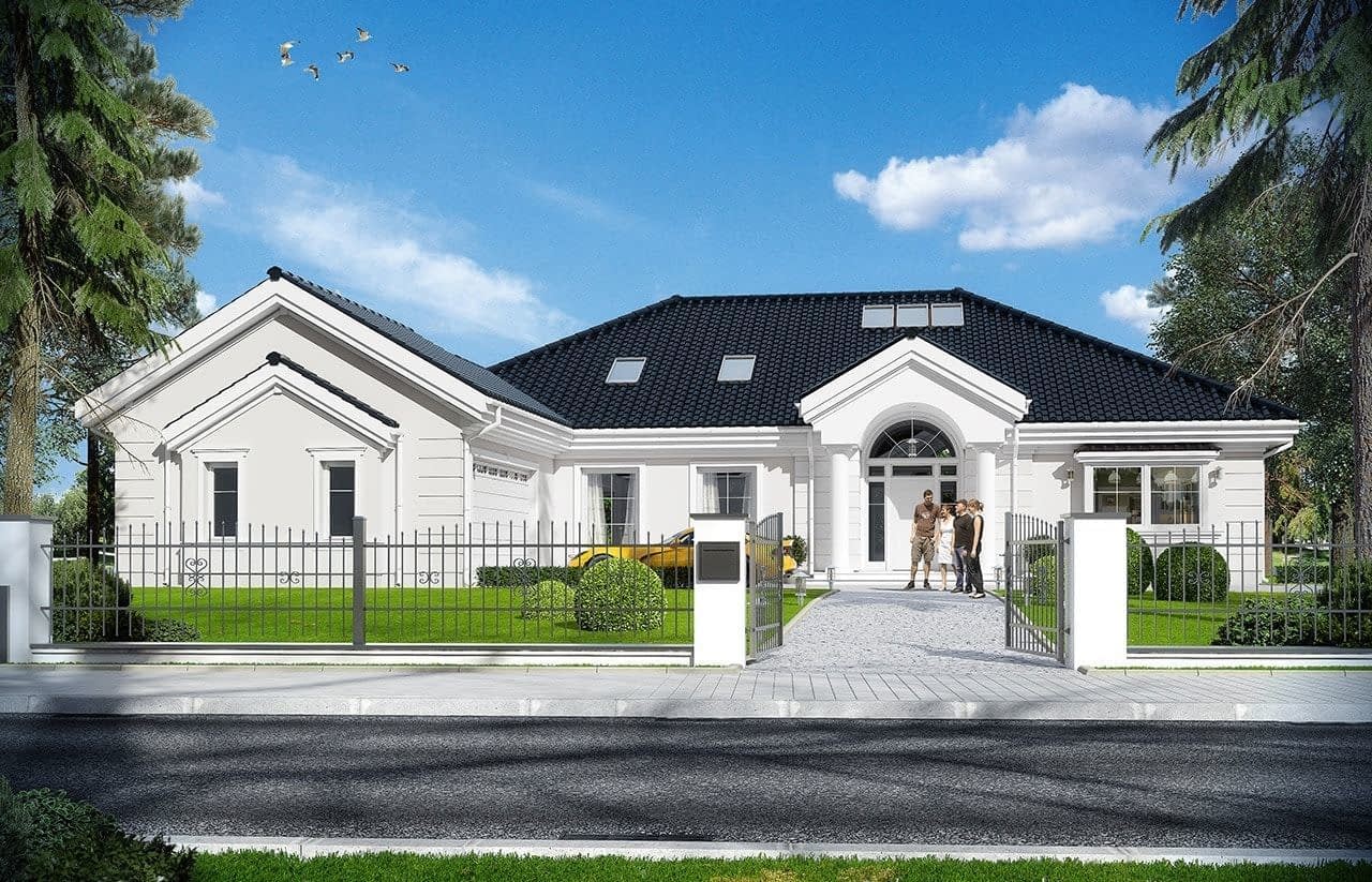 Projekt domu Rezydencja parkowa 3 jest kolejną wersją cieszącego się popularnością projektu z serii „Rezydencja parkowa”. Dom został zaprojektowany jako zmniejszona wersja, o mniejszych wymiarach zewnętrznych, powierzchni zabudowy i powierzchni parteru. Do budynku dodano jednak poddasze użytkowe o powierzchni ponad 50 m2, oraz ponad stumetrową piwnicę. Także gdy razem zliczymy wszystkie kondygnacje dom jest duży. Można wybudować go z piwnicą lub bez, oraz z zagospodarowanym poddaszem, lub pozostawionym strychem nieużytkowym. Wszystko zależy od potrzeb Inwestora i obszerności jego portfela. Piwnicę i poddasze można wykończyć w drugim etapie. To rozłoży koszty budowy na dłuższy okres, a jednocześnie dodatkowa powierzchnia zapewnia bufor zapasowej przestrzeni, która może okazać się przydatna po kilku latach mieszkania. Projekt domu Rezydencja parkowa 3 został zaprojektowany jako podmiejska lub wiejska rezydencja, nawiązująca architekturą do dworków polskich, oraz amerykańskich wilii z przedmieść. Dom został zamknięty w prostokątnej bryle, z dobudowaną częścią garażową. Całość jest przekryta łagodnym wielospadowym dachem. Elewacje ozdabiają detale: wejściowy portyk, wykusze, podcienie, ciekawe okna z łukami. Wszystkie elementy są stylowe, ale całość osadzona jest we współczesności, z nowoczesnymi materiałami i kolorystyką. Dzięki takiemu połączeniu dom jest klasyczny a jednocześnie nowoczesny - tak architektura nigdy się nie zestarzeje. Wnętrze domu: na parterze zaprojektowano wszystkie potrzebne pomieszczenia. Cały program funkcjonalny dla 4-5cioosobowej rodziny. Jest tutaj jednoprzestrzenne wnętrze dzienne otwarte na antresolę na poddaszu. Jest też część z sypialniami, łazienkami i garderobami. W części gospodarczej znajduje się garaż i pomieszczenia gospodarcze. W wersji podstawowej projektu do dyspozycji mieszkańców jest spore poddasze, z dodatkowymi pokojami, oraz duża piwnica. Można oczywiście wykonać dom bez podpiwniczenia. To kwestia decyzji inwestora. W projekcie zastosowano nowoczesne materiały i energooszczędne rozwiązania. Projekt domu Rezydencja parkowa 3 – jak na swoją skalę - ma dość prostą konstrukcję i powinien być łatwy w budowie. Utrzymanie domu dzięki energooszczędnym rozwiązaniom i zwartej bryle również będzie się mieścić w rozsądnych kwotach. Podane koszty realizacji dotyczą projektu Rezydencja Parkowa 3 z piwnicą i poddaszem . Koszty bez piwnicy podano osobno . Projekt dostępny jest w odbiciu lustrzanym oraz kilku wersjach: (Rezydencja Parkowa), (Rezydencja Parkowa 2), (Rezydencja Parkowa 3C), (Rezydencja Parkowa 3D), (Rezydencja Parkowa 4).Uwaga do kosztów realizacji:Koszty dotyczą projektu z piwnicą i z poddaszem. Przy wariancie bez piwnicy oraz z niezagospodarowanym strychem koszt budowy jest niższy - odpowiednio o: SSO - 50 313 zł / SSZ - 54 580 zł /RW - 65 566 zł / RDPK - 120 146 zł(Rezydencja Parkowa), (Rezydencja Parkowa 2), (Rezydencja Parkowa 3), (Rezydencja Parkowa 3C), (Rezydencja Parkowa 3D), (Rezydencja Parkowa 4).