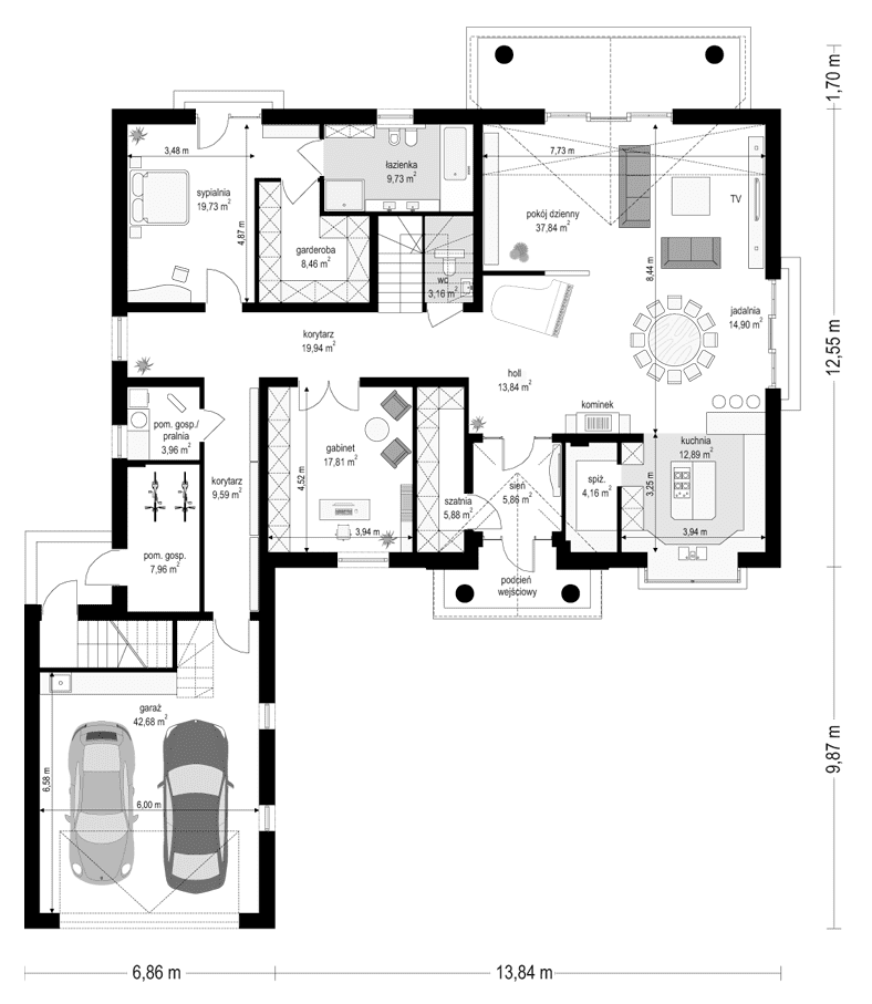 - Rodzaj dachuWielospadowy