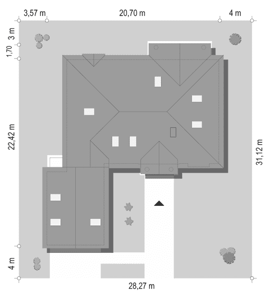 - Minimalne wymiary działki31.12 x 27.7m