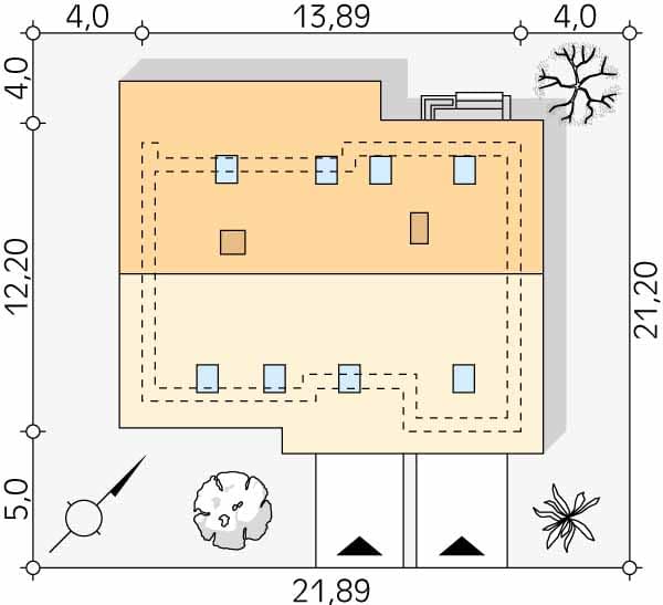 Ściany: 2-warstwowe - pustak ceramiczny + styropian, Stropy: żelbetowe, wylewane, Dach: dachówka ceramiczna CREATON,Rzuty