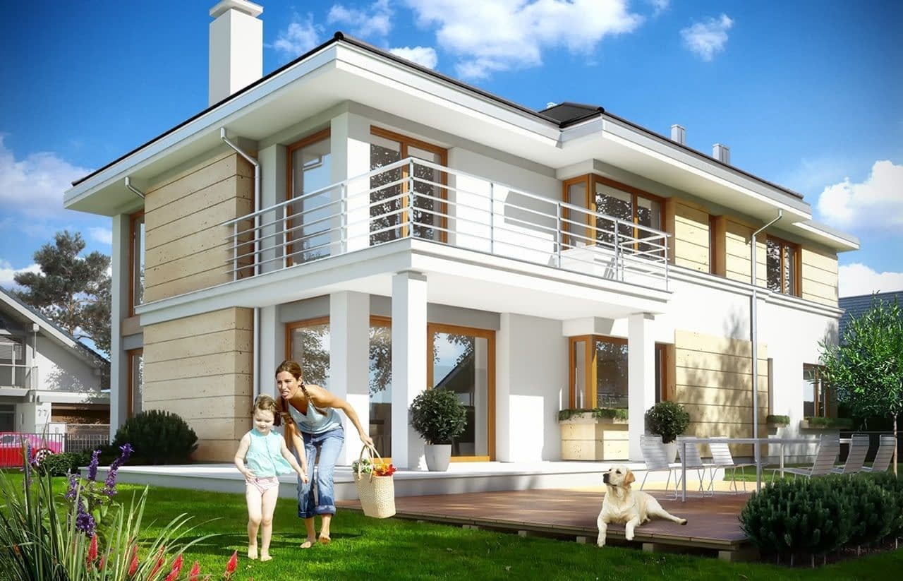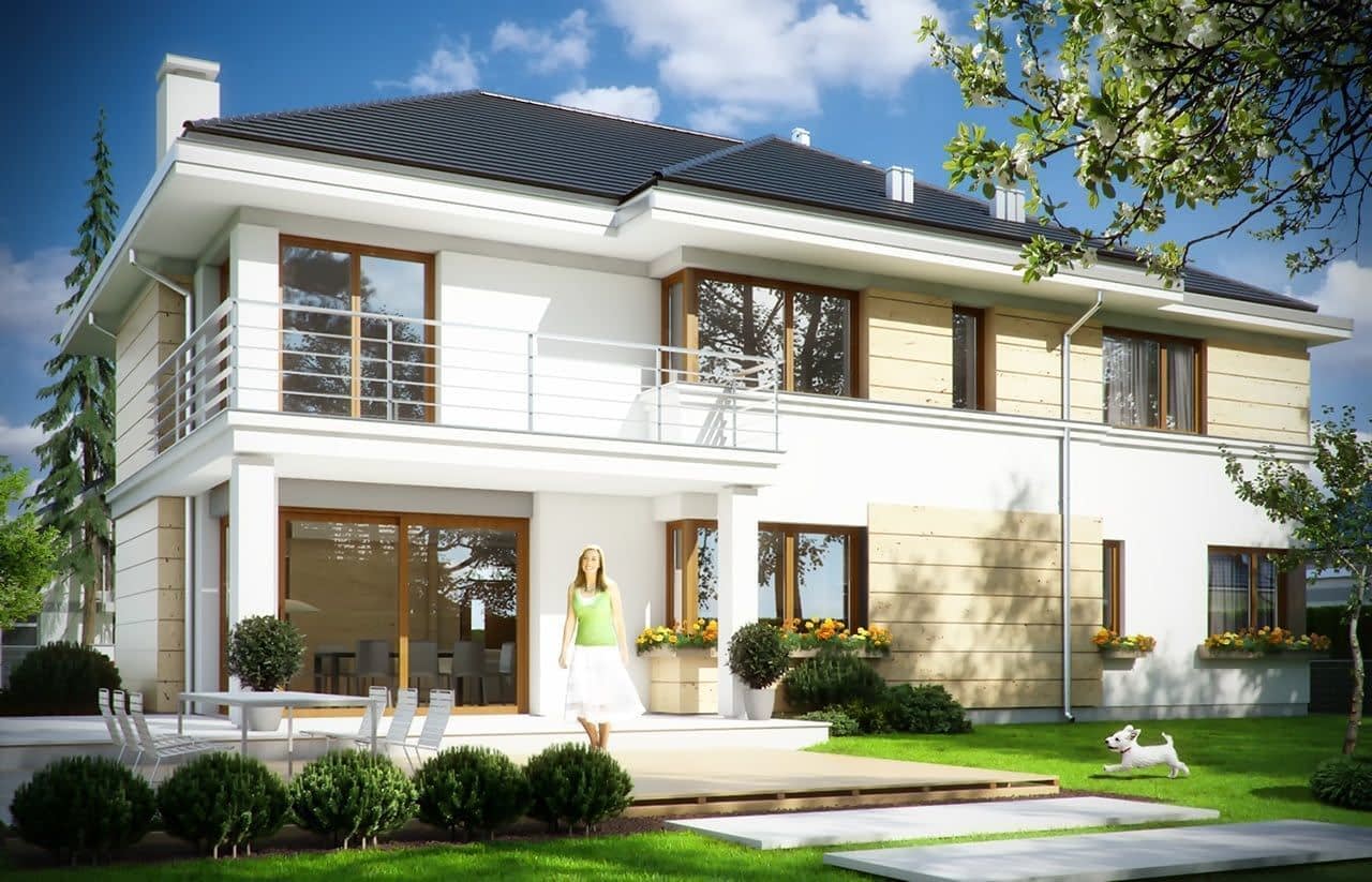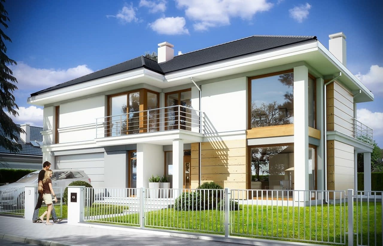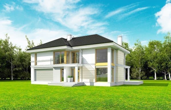 Projekt domu Riwiera 3 to kolejna wersja popularnego projektu „Riwiera” - tym razem wariant domu poszerzonego, o mniejszej głębokości, nadającego się naszerszą i płytszą działkę, z ogródkiem w tylnym bocznym narożniku. Projekt domu Riwiera 3 to wygodny komfortowy dom dla cztero-sześcioosobowej rodziny. Na parterze mieszczą się pomieszczenia dzienne, jak salon, hol z reprezentacyjnymi ozdobnymi schodami, czy kuchnia, oraz część gospodarcza z garażem i kotłownią i dodatkowy pokój - gabinet lub sypialnia gościnna. Piętro mieści cztery pokoje, z oddzielnym apartamentem rodziców z łazienką i dużą garderobą. Obie kondygnacje łączy otwarta pustka nad salonem i antresola obszernego holu na piętrze. Dzięki temu wnętrze domu jest wyjątkowo atrakcyjne i wydaje się jeszcze większe. Wygląd zewnętrzny budynku to nowoczesna bryła przekryta wielospadowym dachem, z elewacją rozdzieloną poziomymi pasami gzymsów, urozmaiconą dużymi przeszkleniami okien. Architektura domu jest jednocześnie nowoczesna i bezpretensjonalna. Budynek szczególnie przypadnie do gustu osobom, które mają trudną działkę - z drogą od nasłonecznionej strony. Osobom, które z jednej strony muszą wpuścić możliwie dużo światła do salonu i pokoi od południa, z drugiej strony nie chcą mieć tarasu od frontu domu, tylko ogródek za domem lub z jego boku. Projekt domu Riwiera 3 dostępny jest również w odbiciu lustrzanym. Zapraszamy do zapoznania się z pełną ofertą pracowni MG Projekt tej serii: bazowa (Projekt domu Riwiera), pomniejszonej (Projekt domu Riwiera 2), pomniejszonej ze zmienionym układem wewnętrznym (Projekt domu Riwiera 4) oraz zmodyfikowana i ulepszona wersja bazowego projektu (Projekt domu Riwiera 5). Zapraszamy!