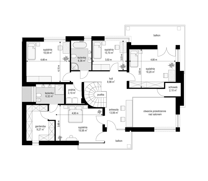 - Rodzaj dachuWielospadowy