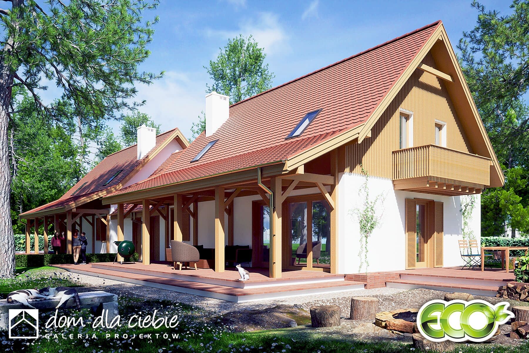 (Uwaga: projekty typu bliźniak oferujemy jako domy dwulokalowe, projekt można zamówić również w zabudowie bliźniaczej)Opis dla jednego segmentu:Rodzynka to projekt domu jednorodzinnego, Z dwuspadowym dachem w układzie kalenicowym względem frontu budynku. Dom dla czteroosobowej rodziny i wyróżnia się uniwersalnym wzornictwem.Wejście główne do domu prowadzi do wiatrołapu z praktycznymi szafami. Na parterze znajduje się dodatkowy pokój. Otwarta kuchnia obejmuje spiżarnię. Serce domu stanowi centralnie umieszczony kominek. Taras, ciągnący się przez cała elewację. Obok kuchni znajduje się miejsce na stół. Z holu można dotrzeć do małej łazienki i pomieszczenia technicznego. Pod drewnianymi schodami znajduje się garderoba. Na piętrze rozmieszczono trzy przytulne sypialnie oraz wspólną łazienkę.Ten projekt stanowi atrakcyjną propozycję ekonomicznego i ekologicznego domu, doskonale dostosowanego do stałego zamieszkania przez cały rok.