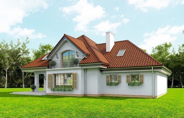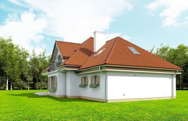Projekt domu Romeo to komfortowy dom jednorodzinny, dla 4-6 osobowej rodziny, parterowy z poddaszem użytkowym. Budynek ma zwartą bryłę, zaprojektowaną na planie kwadratu, z dobudowaną częścią garażowo-gospodarczą. Jest wariantem projektu Julka- jej większym bratem. Architektonicznie domek nawiązuje do tradycji polskiego dworku i przedwojennych willi, ale we współczesnym duchu – z wykorzystaniem nowoczesnych materiałów i technologii. Dom jest bardzo dobrze izolowany – w łatwy sposób może stać się budynkiem energooszczędnym. Elewację frontową ozdobiono podestem wejściowym, nad którym na dwóch kolumnach wsparto balkonik. Szerokie drzwi z bocznymi naświetlami zapraszają nas do wnętrza. Elewację ogrodową z kolei ozdabiają: wykusz salonu z pięknym szerokim oknem, oraz podcień, przez który szerokimi drzwiami balkonowymi wychodzimy z pokoju dziennego na taras i do ogrodu. Wnętrze domu podzielono na część dzienną na parterze, część nocną – z sypialniami na poddaszu, oraz część gospodarczą w dobudowanej bryle garażu. Piękny, bardzo duży salon, połączony z holem i półotwartą kuchnią tworzy komfortową i reprezentacyjną przestrzeń dzienną, dla której przyjęcie, czy uroczysty obiad nie będzie wyzwaniem. W środku przestrzeni znajdują się reprezentacyjne schody na poddasze, ozdabiające hol. Obok kuchni znajduje się potrzebna spiżarka. Po drugiej stronie przedsionka – dodatkowy pokój (gabinet lub sypialnia gościnna). Z holu przechodzimy do dwustanowiskowego garażu i dużej kotłowni. Na poddaszu mieszczą się trzy wygodne sypialnie i przestronna łazienka. Sypialnia rodziców – z własną garderobą. Nad garażem znajduje się wolna przestrzeń strychu, który można łatwo zaadaptować na cele użytkowe. Projekt domu Romeo to dobrze przemyślany, funkcjonalny i wygodny budynek, w pięknym „opakowaniu”. Pracownia posiada także odbicie lustrzane projektu.