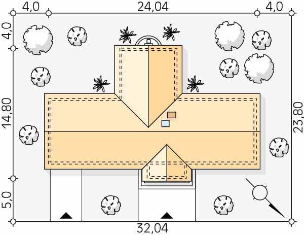 Ściany: 2-warstwowe - bloczek z betonu komórkowego SOLBET 24 cm + styropian Termo Organika, Stropy: z wiązarów dachowych firmy MITEK, Dach: dachówka ceramiczna CREATON,Rzuty