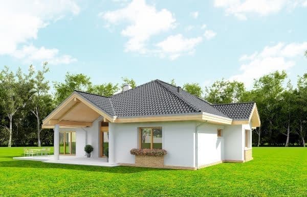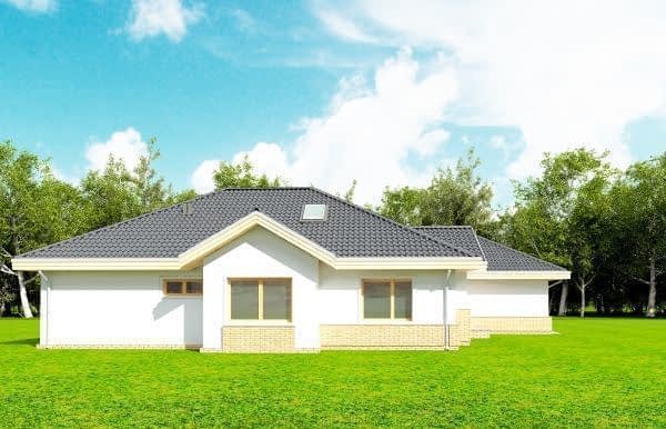 Projekt domu Rozłożysty to fantastyczna komfortowa willa, łącząca w sobie elementy nowoczesności i tradycyjnej formy. Dom jednorodzinny przeznaczony dla 4-5 osobowej rodziny. Parterowy układ funkcjonalny, gdzie wszystkie pomieszczenia dostępne są z jednego poziomu, rozczłonkowana bryła przykryta łagodnymi dachami, część dzienna z wysokimi sufitami sięgającymi dachu, bliskość wnętrza z otaczającym ogrodem - to wszystko powoduje, że dom będzie wspaniałym miejscem do życia. Każda elewacja jest ciekawa i oryginalna. Front domu, z wykuszem zakończonym daszkiem, oraz mini-dziedzińcem wejściowym, z eleganckimi drzwiami z naświetlem. Elewacja ogrodowa z pięknym zadaszonym tarasem i przeszkleniami salonu. Nawet elewacje boczne – z dodatkowymi wykuszami są interesujące. W elewacjach zastosowano tradycyjne elementy z użyciem współczesnych detali. Dom Rozłożysty ma solidny wygląd, a jednocześnie jest bardzo świeży i nowoczesny. Budynek doskonale wpasuje się w niemal każdy teren - najlepiej będzie wyglądał na większej działce, w otoczeniu rzadszej zabudowy. Projekt domu Rozłożysty obejmuje – na parterze: część dzienną – z salonem, jadalnią, kuchnią i holem, część nocną – z czterema pokojami, oraz część gospodarczą - z garażem i kotłownią. Prócz tego można dowolnie wykorzystać przestrzeń strychu - jako zamknięty magazyn, lub jako otwartą na salon antresolę (na przykład pokój sportowy, czy hobby). Fenomenalną przestrzeń dzienną, z pustką nad salonem i kuchnią zobaczyć można na naszych wizualizacjach wnętrz. Budynek przez rozległy plan i spory dach nie będzie z pewnością najtańszy w realizacji, ale na pewno wart jest szaleństwa. Szczególnie jeśli już mieszkało się wcześniej w domu i spędziło pół życia biegając po schodach i nie wykorzystując w pełni wyższych kondygnacji. Zastosowane energooszczędne materiały, izolacje i instalacje sprawią, że dom nie będzie drogi w utrzymaniu. Pracownia posiada odbicie lustrzane projektu domu Rozłożysty oraz wersję o większej powierzchni 182.75 m2 ze zmienionym układem pomieszczeń (projekt domu Rozłożysty 2).
