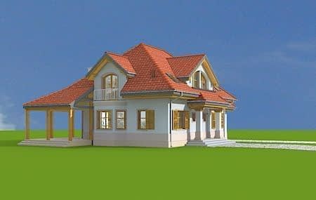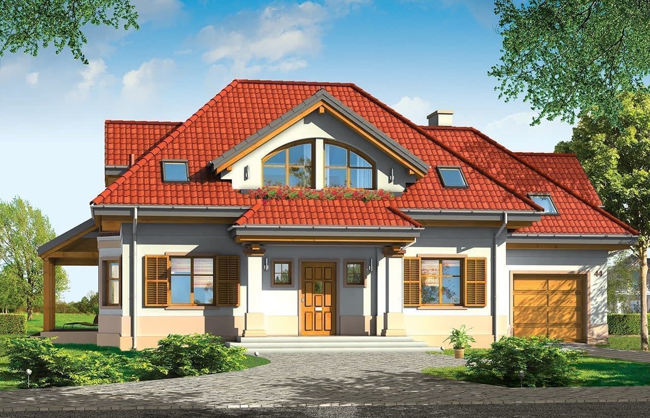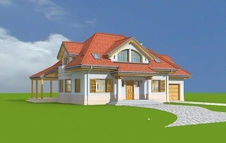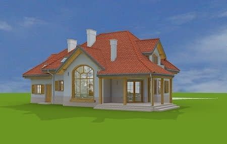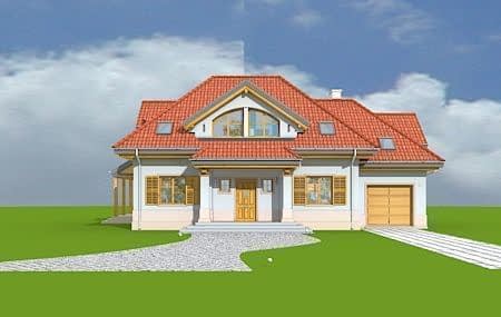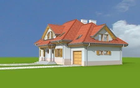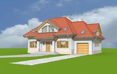 Projekt domu Rubin 2 to wariantowa wersja popularnego projektu Rubin - tym razem zmniejszona, z jednostanowiskowym garażem. Projekt domu przeznaczony jest dla cztero-pięcioosobowej rodziny. Parterowa bryła z poddaszem użytkowym, składa się z części mieszkalnej i dobudowanego z boku garażu. Całość przekryta jest wielospadowym dachem, z dużymi lukarnami na każdej elewacji. Spokojna podmiejska architektura domu, z ciekawymi detalami, jak wykusze, ganki z kolumnami, czy łukowe okna, łączy się z funkcjonalnie zaprojektowanym wnętrzem budynku. Szczególną atrakcją bryły jest duża lukarna frontowa z gankiem wejściowym i kolumnami, duży podcień ogrodowy, gdzie pod zadaszeniem można schronić się przed deszczem lub upalnym słońcem, oraz wielkie dwukondygnacyjne okno salonu, otwierające wnętrze na ogród. Wnętrze parteru to przede wszystkim otwarta przestrzeń dzienna, z salonem, jadalnią i holem. Salon częściowo otwarty jest na antresolę poddasza, dzięki czemu domownicy będą mogli cieszyć się zwiększoną przestrzenią pokoju dziennego. Na parterze zaplanowano też kuchnię, dodatkowy pokój - gabinet lub na przykład sypialnię gościnną, oraz kotłownię i garaż z zapleczem ogrodowym. W projekcie domu Rubin 2, na poddaszu zmieszczono cztery sypialnie z garderobami i szafami wbudowanymi, dużą łazienkę i pralnię-suszarnię. Z holu - antresoli na poddaszu otwiera się przez wysokie okno imponujący widok na salon pod spodem i ogród. Pracownia MGProjekt posiada też projekt domu Rubin w odbiciu lustrzanym i inne jego wersje: podstawowy projekt domu Rubin, projekt domu Rubin 2 oraz projekt domu Rubin 3.