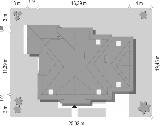 - Minimalne wymiary działki19.45 x 25.32m
