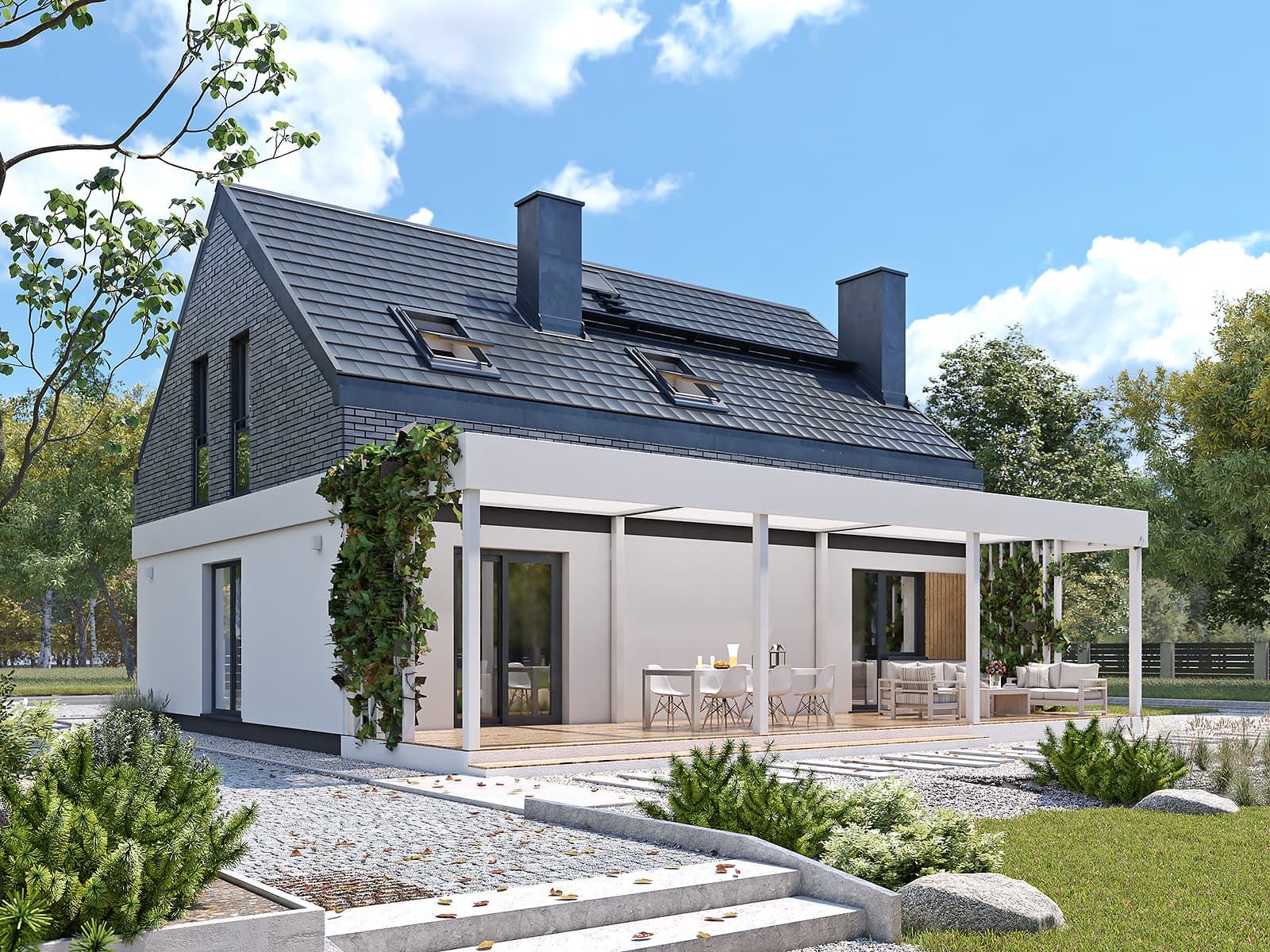RUFUS to projekt domu z użytkowym poddaszem wpisujący się w nurt współczesnej architektury. Rzut o kształcie prostokąta został rozplanowany na 129 m2. Dwuspadowy dach bezokapowy w połączeniu z minimalistyczną i elegancką elewacją podnoszą walory estetyczne budynku. Dom został zaprojektowany jako nowoczesna stodoła. Liczne przeszklenia zapewniają duży dopływ naturalnego światła. Projekt przewiduje obszerny taras umożliwiający relaks na świeżym powietrzuKonstrukcja