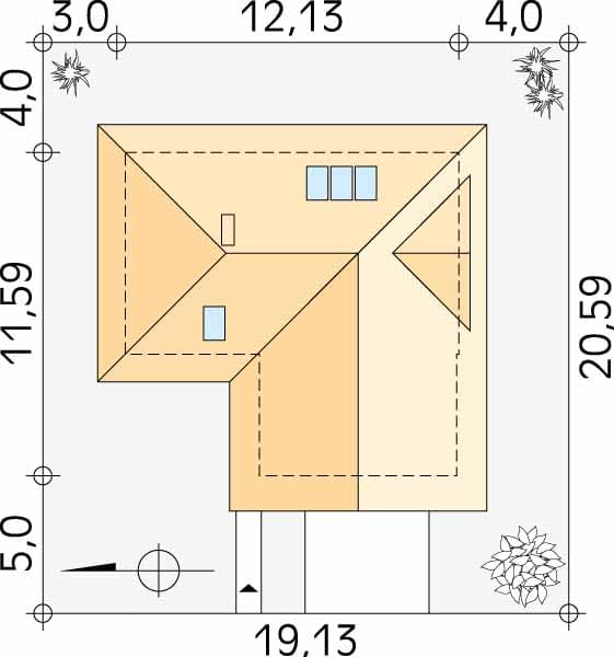 - Minimalne wymiary działki20.69 x 19.13m